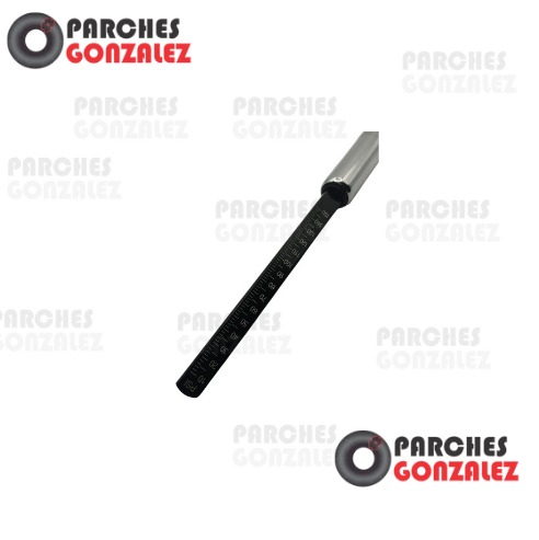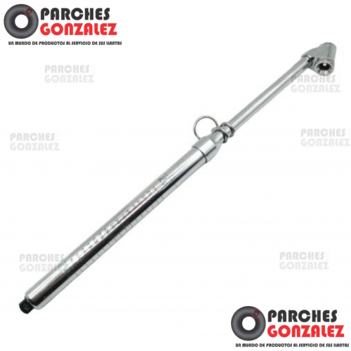 MEDIDOR DE PRESIÓN, CON ESCALA METÁLICA COLOR NEGRO. CUENTA CON DOS BOCAS LAS CUALES PERMITEN CALIBRAR LAS LLANTAS CON VÁLVULAS EXTERNAS E INTERNAS.