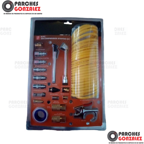 19 ACCESORIOIS DE AIRE ESENCIALES.MANGUERA DE AIRE DE RETRICESO DE 25 PIES, PISTOLA PARA SOPLETEAR , 4 BOQUILLAS DE INFLADO Y 2 AGUJAS DE INFLADO CON BALON, 2 COPLES RAPIDOS