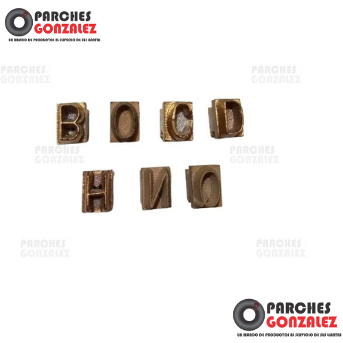 ELABORADO EN BRONCE...SE COLOCAN EN LA PARTE DE ENFRENTE MÁXIMO CUATRO LETRASMEDIDA 3.3 CM DE LARGO X 2 CM DE ANCHOTENEMOS TODO EL ALFABETOPESO 0.050 G