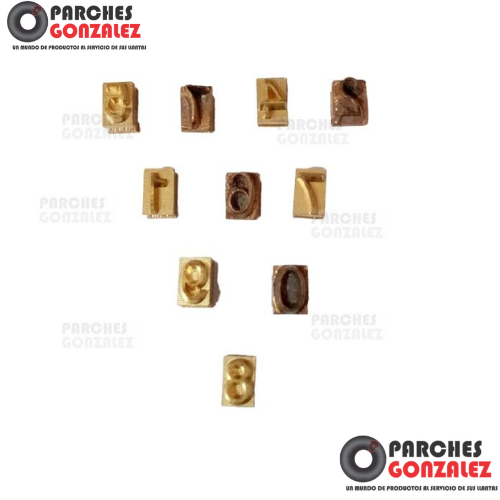 ELABORADO EN BRONCE...SE COLOCA EN EL MARCADOR DE LLANTAS, EN LA PARTE DE ENFRENTE MÁXIMO NUEVE NÚMEROSMEDIDA 1 CM DE LARGO X 0.5 CM DE ANCHOTENEMOS TODA LA NUMERACIÓN DEL